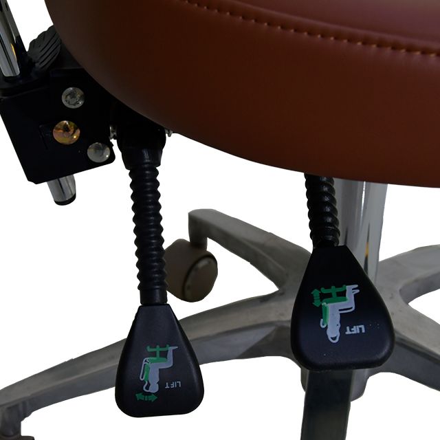 Модел RS-05 – с облегалка и подпора -Метална основа 560 мм, силиконови колела -Седалка диаметър 450 мм, височина 75 мм -Метален ринг за краката 420мм |